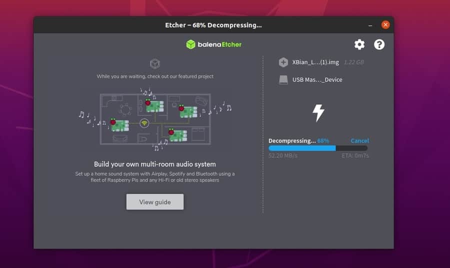 Then, the USB drive will be automatically selected in Etcher. Now click the Flash button. That’s all you needed to do! The rest of the work will be done automatically. Once the bootable XBian image is ready, eject your USB and insert the SD card inside the Raspberry Pi board.